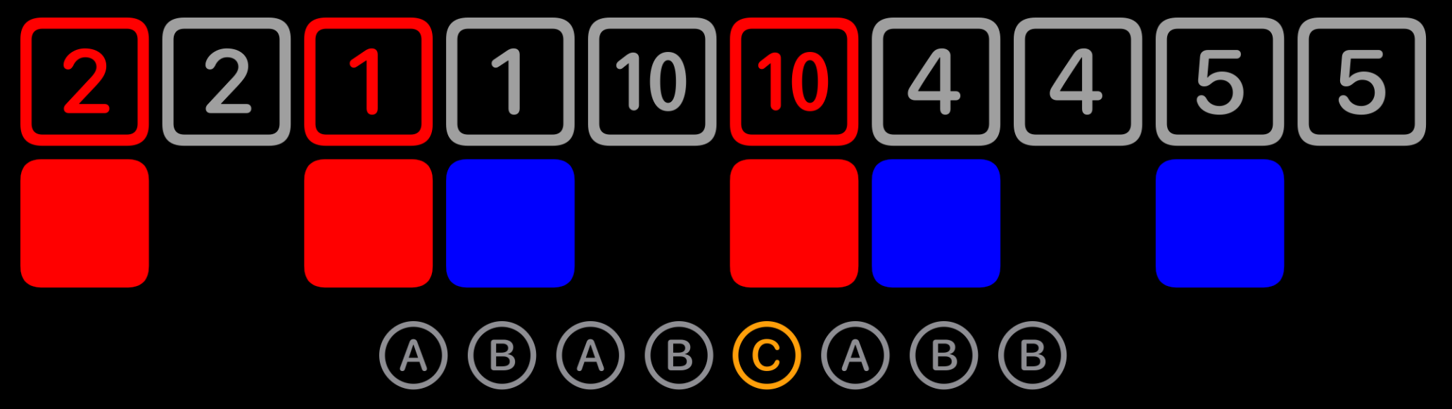 Sequences have two states: active and muted. Red and blue, respectively. They can be copied, combined or dismissed.