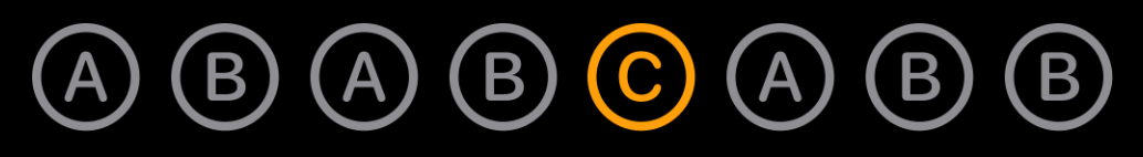 16 loops can be arranged in Song Parts. Each is represented by a letter. Add new Song Parts by pressing the forward button.